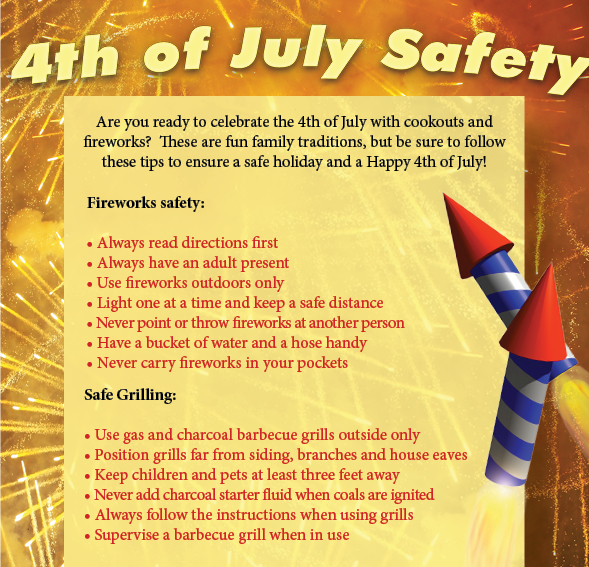 This Fourth of July, friends and family all across the country will gather in celebrating our nation’s independence and what is considered by many to be the unofficial start of summer. If your traditions include fireworks and barbecues, these tips can help you prevent emergencies and enjoy a safe holiday;