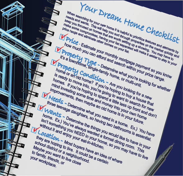 When searching for a new home it is helpful to prioritize features and elements by needs and wants. This will help you sort through properties on the market quickly and keep you focused on homes that are worth setting up a showing. You may have to make some compromises, having your list separated will make it easier to stay in your price range and eliminate other homes on your list. See the checklist below and consider these 6 things; Price, Property Type, Property Condition, Needs, Wants, and location of the home.
