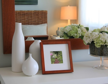 Accessories can make a room more inviting. Odd numbers are preferable, especially three. Imagine a triangle and place an object at each point. Be sure to vary height and width, with tallest in the back. Group by color, texture, or some other unifying factor.  |