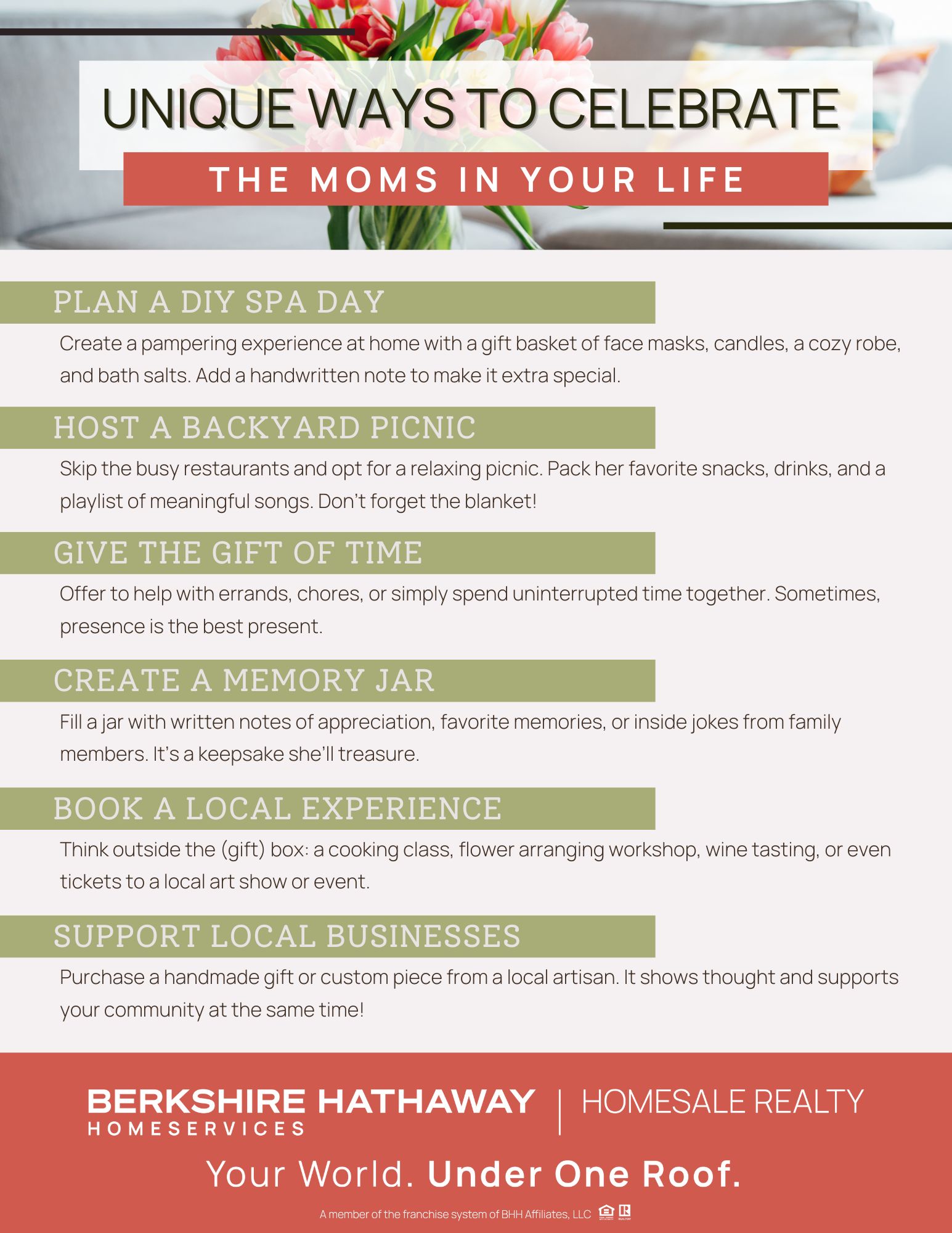 Mother’s Day is the perfect time to show appreciation for the incredible moms, grandmothers, and mother figures in our lives. Whether you’re celebrating a loved one or helping someone else do the same, a meaningful gesture goes a long way. This year, skip the usual flowers and explore one of these heartfelt, creative ideas to make her feel truly special. From relaxing moments to memorable experiences, there’s something here for every kind of mom.
